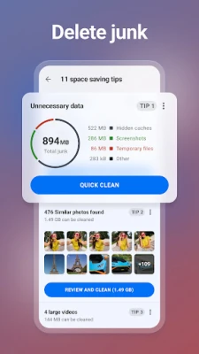 Ar "CCleaner for Android" jūs varat droši atbrīvoties no digitālajām atkritnes kaudzēm. Ātri iztīriet kešatmiņu, lejupielādes mapes, pārlūka vēsturi, starpieliktnes saturu un atlikušos datus, kas aizņem dārgo atmiņu. Analizējiet krātuves lietojumu un atinstalējiet nevēlamās lietotnes vienā acumirklī. Atklājiet, kuras lietotnes patērē visvairāk datus vai izlādē akumulatoru, un identificējiet reti izmantotās programmas, lai atjaunotu optimālu veiktspēju. Sakārtojiet savu fotoattēlu galeriju, meklējot un dzēšot līdzīgus, vecus vai sliktas kvalitātes attēlus (pārāk gaišus, tumšus vai nefokusētus). Samaziniet failu izmērus, izmantojot dažādus saspiešanas līmeņus, un viegli pārvietojiet oriģinālus uz mākoņkrātuvi, atbrīvojot ierīces atmiņu.