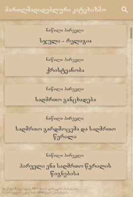"კატეხიზმო" ir ceļvedis pareizticīgās baznīcas katehisma apguvei. Lietotnes saturs balstīts uz 1911. gada izdevumu, un tajā iekļauts arī Gruzijas Baznīcas 1989. gada kalendārs. Izpētiet pareizticīgo mācības padziļināti ar šo vēsturisko resursu.