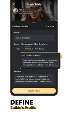 Atklājiet Talkie – platformu, kurā varat radīt savu unikālo, ar AI darbinātu Visumu. Pievienojieties izcilākajai AI satura veidotāju un entuziastu kopienai, lai kopīgi veidotu, dalītos un izpētītu neierobežotas iespējas. Sāciet savu AI radīto piedzīvojumu jau šodien!
