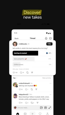 Neatpalieciet no jaunākajām tendencēm un tiešraides notikumiem – vai tas būtu jauna mūzika, filmu pirmizrādes, sports, spēles, TV šovi vai jaunākie produktu izlaidumi. Atklājiet diskusijas, atrodiet atbildes uz saviem jautājumiem vai gūstiet jaunas zināšanas no plaša sarunu loka, viedokļu līderiem un nozares ekspertiem. Saņemiet paziņojumus, kad jūsu iecienītie profili uzsāk jaunu diskusiju. Unikāli, Threads ir daļa no "fediverse" – globāla, atvērta sociālā tīkla, kas sastāv no neatkarīgiem serveriem, kuri savstarpēji apmainās ar informāciju, lai paplašinātu jūsu savienojumu un atklājumu loku visā tīklā.