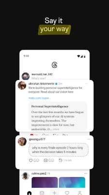 Threads ir dinamisks tikšanās punkts, kur saplūst dažādas kopienas, lai apspriestu visu – sākot no šodienas aktuālākajām tēmām līdz rītdienas tendencēm. Neatkarīgi no jūsu interesēm, šī platforma sniedz iespēju sekot un tieši sazināties ar iemīļotiem satura veidotājiem un līdzīgi domājošiem cilvēkiem. Vai arī, ja vēlaties, izveidojiet savu uzticīgo sekotāju loku, lai dalītos ar savām idejām, viedokļiem un radošumu ar pasauli.