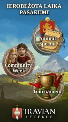 Travian: Legends piedāvā nepārtrauktu izaicinājumu un godības iespējas. Pārbaudi savas taktiskās prasmes Travian turnīros, kur tikai stratēģiski izveicīgākie sasniegs virsotnes. Piedalies ikgadējos īpašajos pasākumos ar unikāliem spēles pavērsieniem un apliecini savas līdera spējas kopienas nedēļās. Spēle ir pieejama gan mobilajās ierīcēs, gan datorā, nodrošinot, ka tu vari sazināties ar saviem sabiedrotajiem un plānot stratēģiju kopā ar miljoniem spēlētāju visā pasaulē jebkurā laikā un vietā. Ievērojiet, ka katrs spēles raunds ir ierobežots – tikai veiksminīgākais iekarotājs izcīnīs galīgo uzvaru un ierakstīs savu vārdu vēstures annālēs.