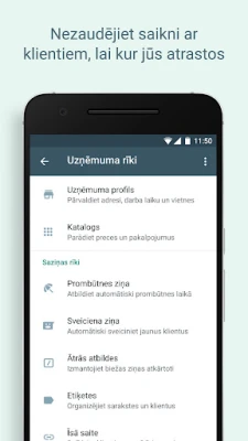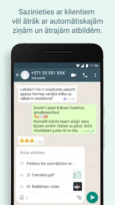 Pārveidojiet savu biznesa komunikāciju ar WhatsApp Business – platformu, kas apvieno jūsu iemīļotās ziņojumapmaiņas ērtības ar jaudīgiem uzņēmējdarbības rīkiem. Šis risinājums ir radīts, lai palīdzētu uzņēmumiem, neatkarīgi no to lieluma, veidot efektīvākas attiecības ar klientiem, uzlabot produktivitāti un veicināt stabilu izaugsmi. Izmantojiet WhatsApp Business, lai sazinātos gudrāk, stiprinātu klientu uzticību un efektīvi paplašinātu sava uzņēmuma darbību. Atklājiet iespēju sniegt bezmaksas zvanus* un bezmaksas starptautiskus ziņojumus*, vienlaikus piekļūstot īpašām funkcijām, kas paredzētas jūsu biznesa vajadzībām.